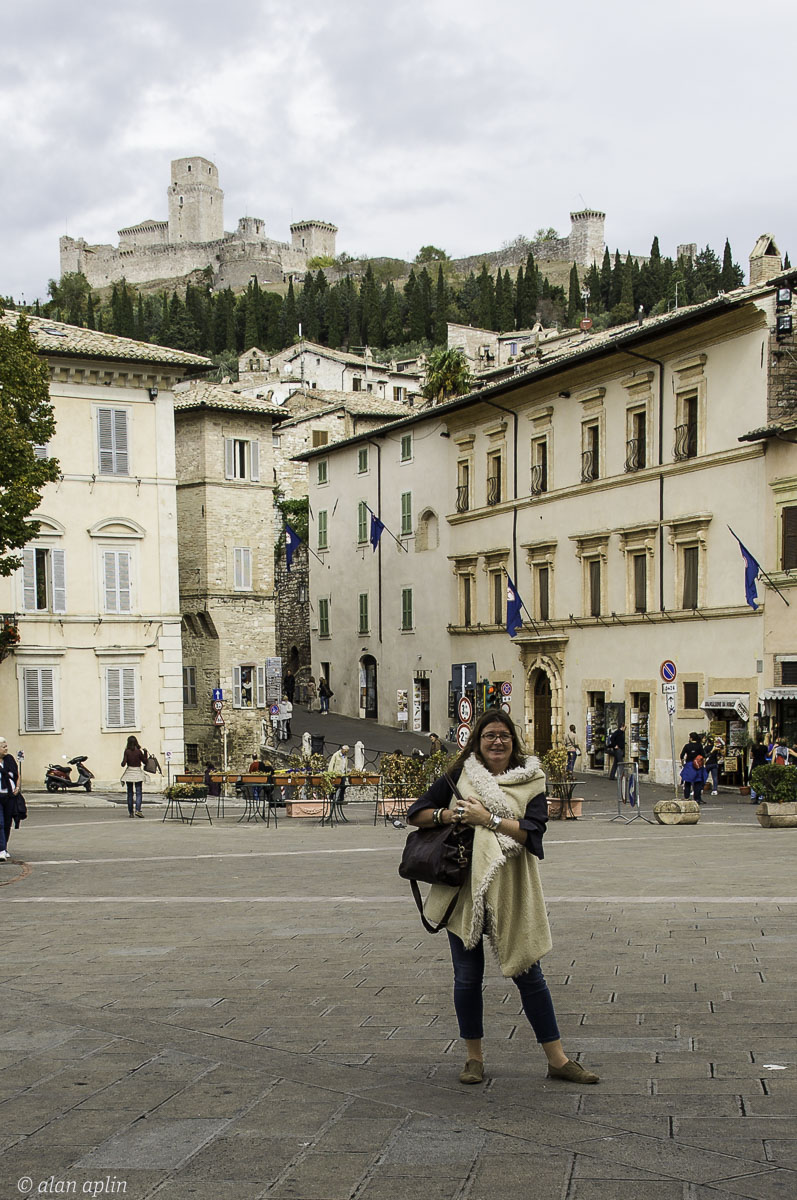 2015, ACQUAINTANCES, Assisi, City Street, EUROPE, ITALY, MAN MADE, PEOPLE, PLACES, Rick Steves Tour Guide, Rocca Maggiore, THINGS, YEAR
