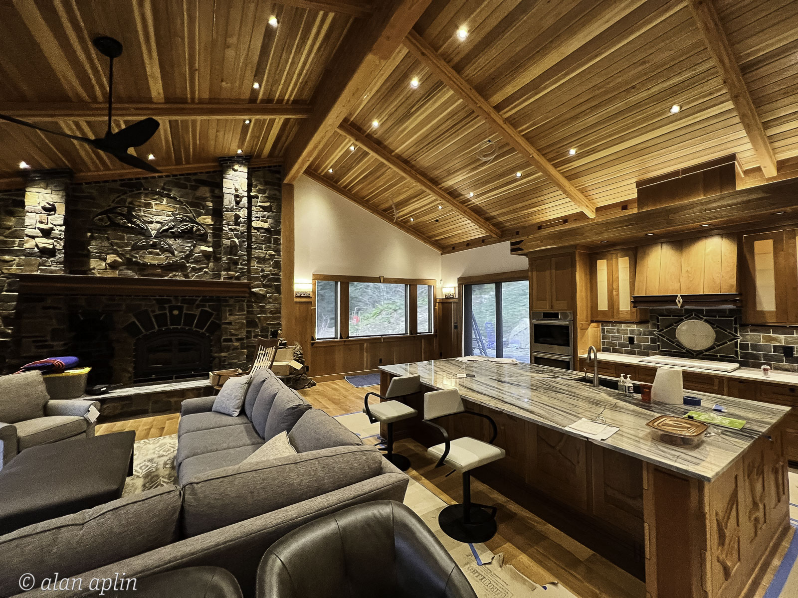 2023, Cabin, EVENTS, Hardwood Floor, LIghting, PLACES, REMODEL, Stone Work, WAUNA LAKE, Window Shades, Window Trim, Wood Paneling, YEAR