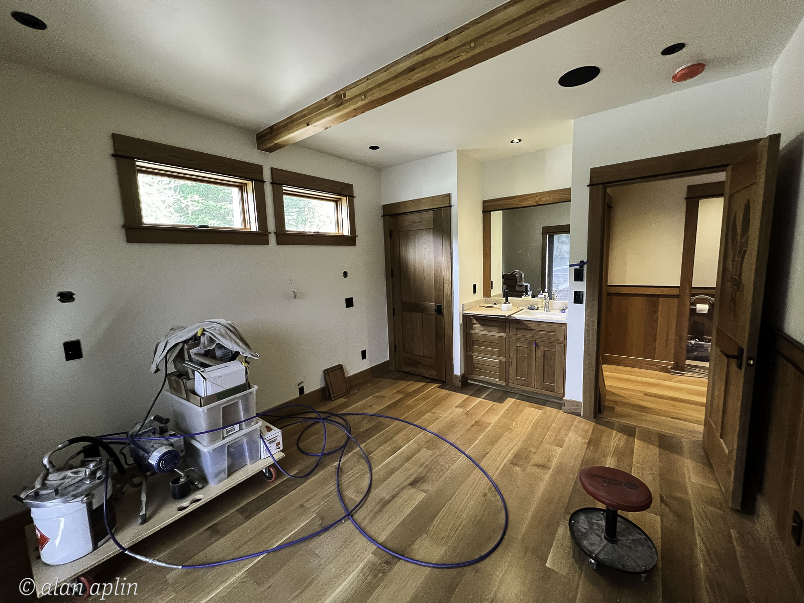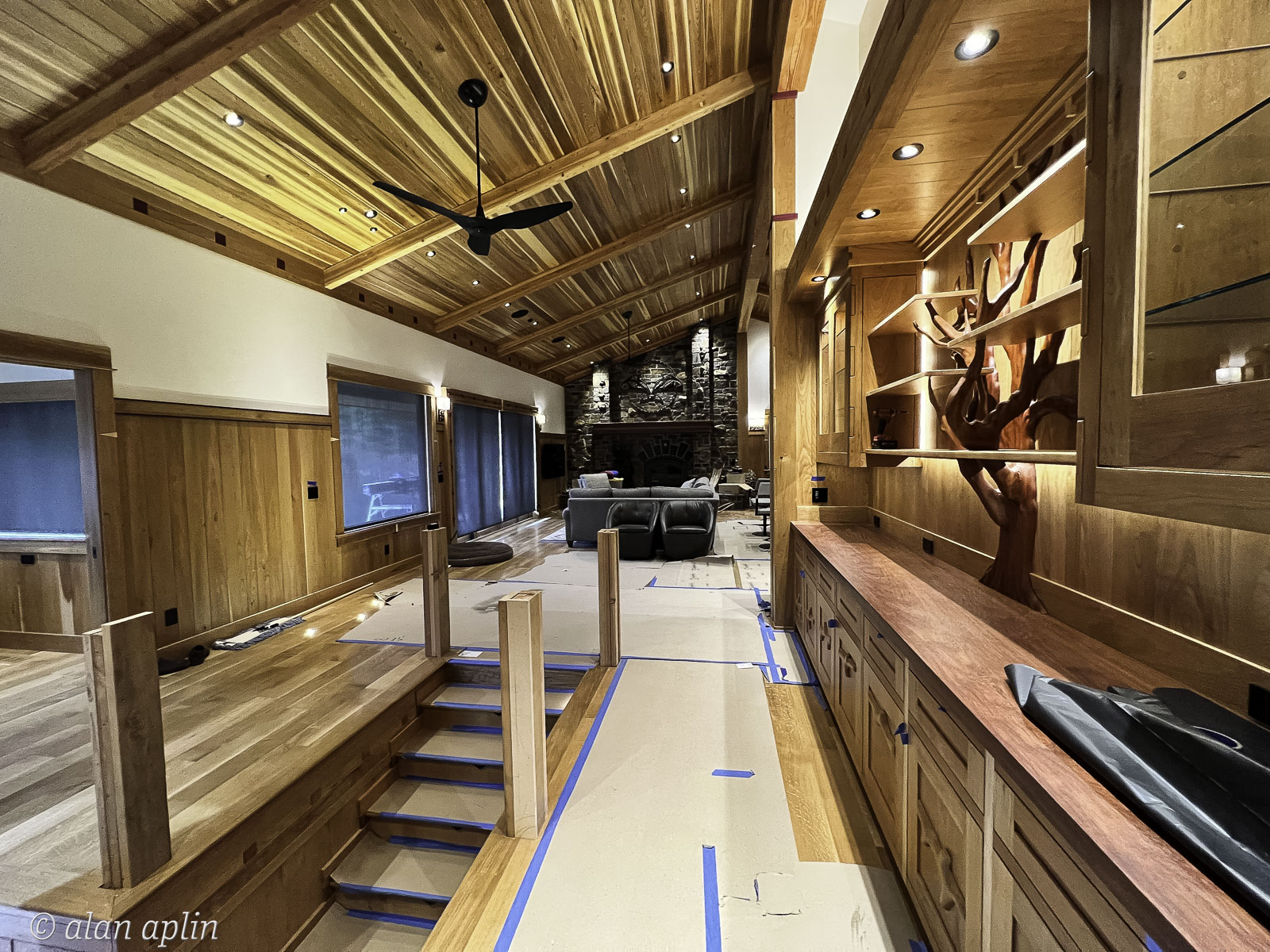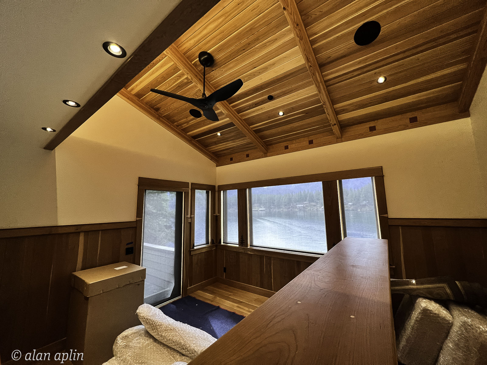 2023, Cabin, Dave Prosser, EVENTS, Hardwood Floor, LIghting, PEOPLE, PLACES, REMODEL, WAUNA LAKE, Window Shades, Window Trim, Wood Paneling, YEAR