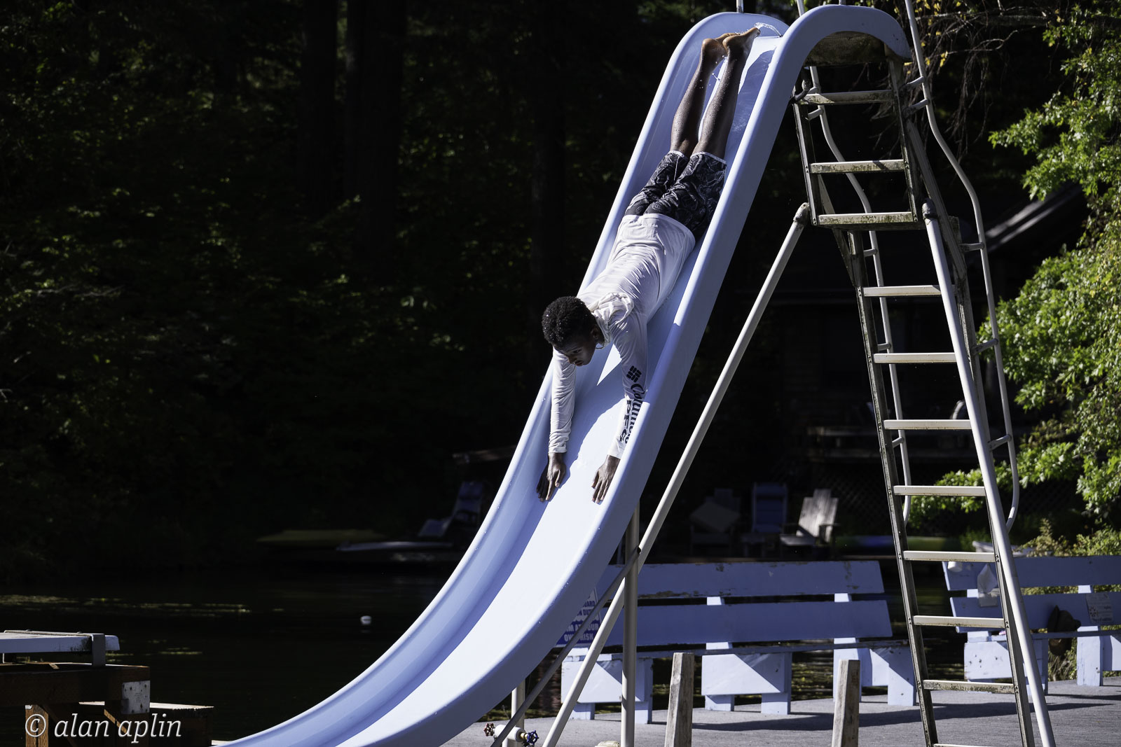 2024, IMMEDIATE FAMILY, PEOPLE, PLACES, Slide, Swim Dock, WAUNA LAKE, Xander Siadal, YEAR